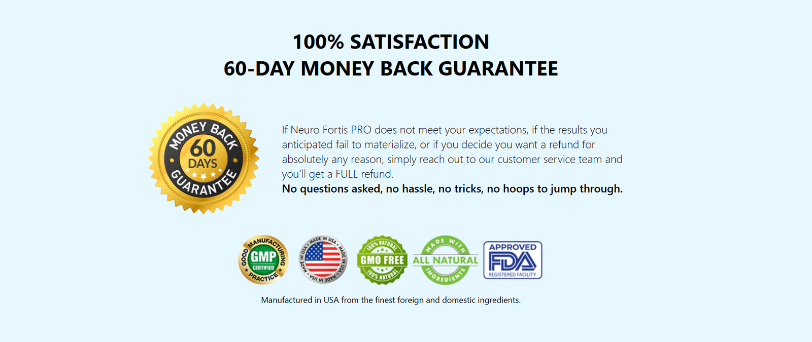 If Neuro Fortis PRO does not meet your expectations, if the expected results are not achieved, or if you decide to request a refund for any reason, simply contact our customer support team and you will receive a full refund.